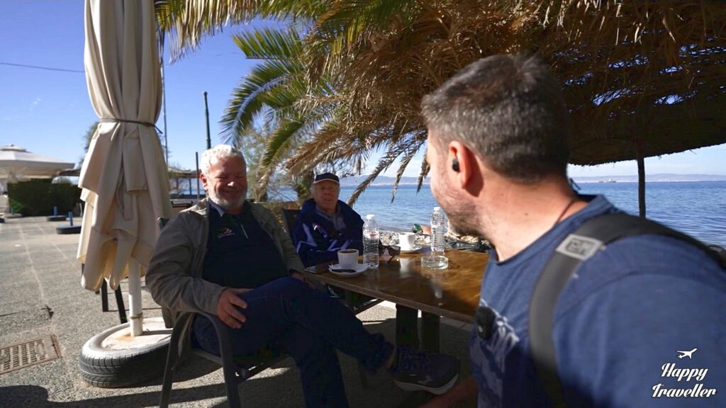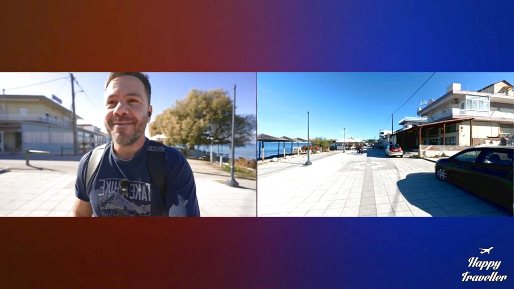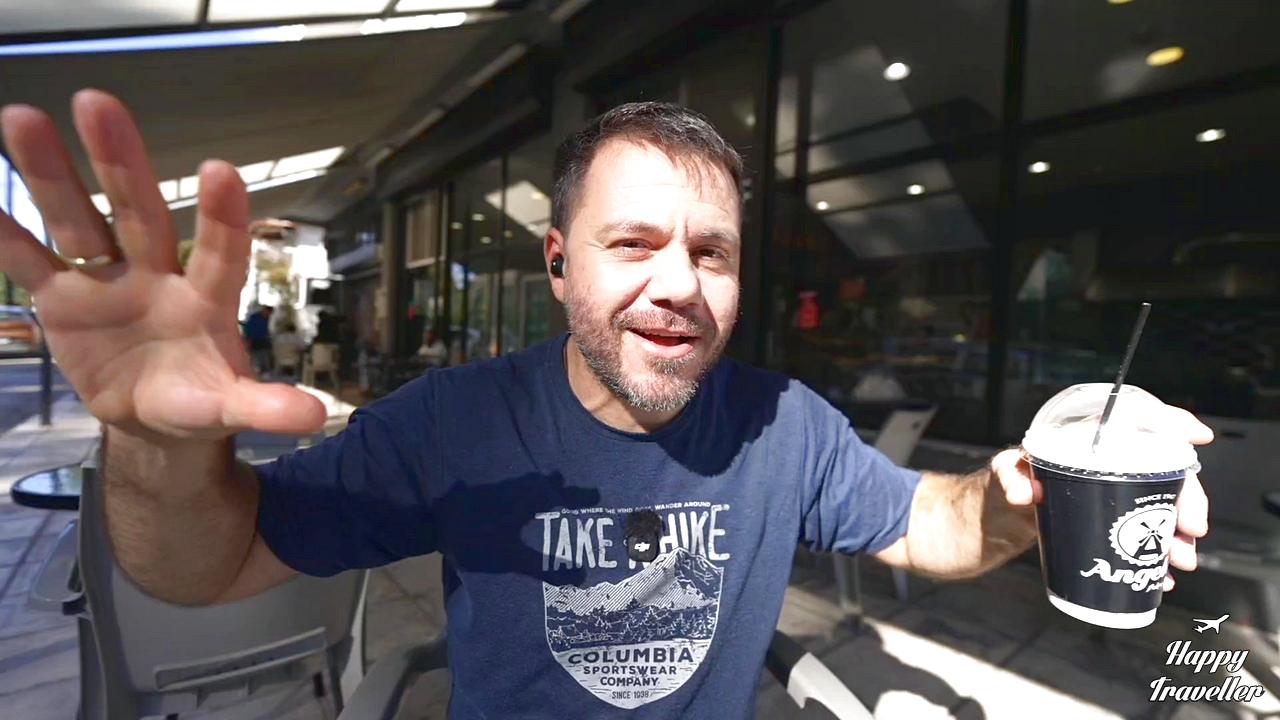 Μετά έκανε βόλτα στον οικισμό και στις πλατείες και στην εκκλησία της Φανερωμένης και απέναντι από εκεί στο κατάστημα Angelo bakery έφαγε γλυκάκια. Συνέχισε βόλτα στην παραλιακή και ήπιε έναν καφέ στο Nouvelle Vogue με την ωραία θέα. Έπειτα κατέβηκε πάλι κάτω στην προβλήτα και έκλεισε το λάιβ.
