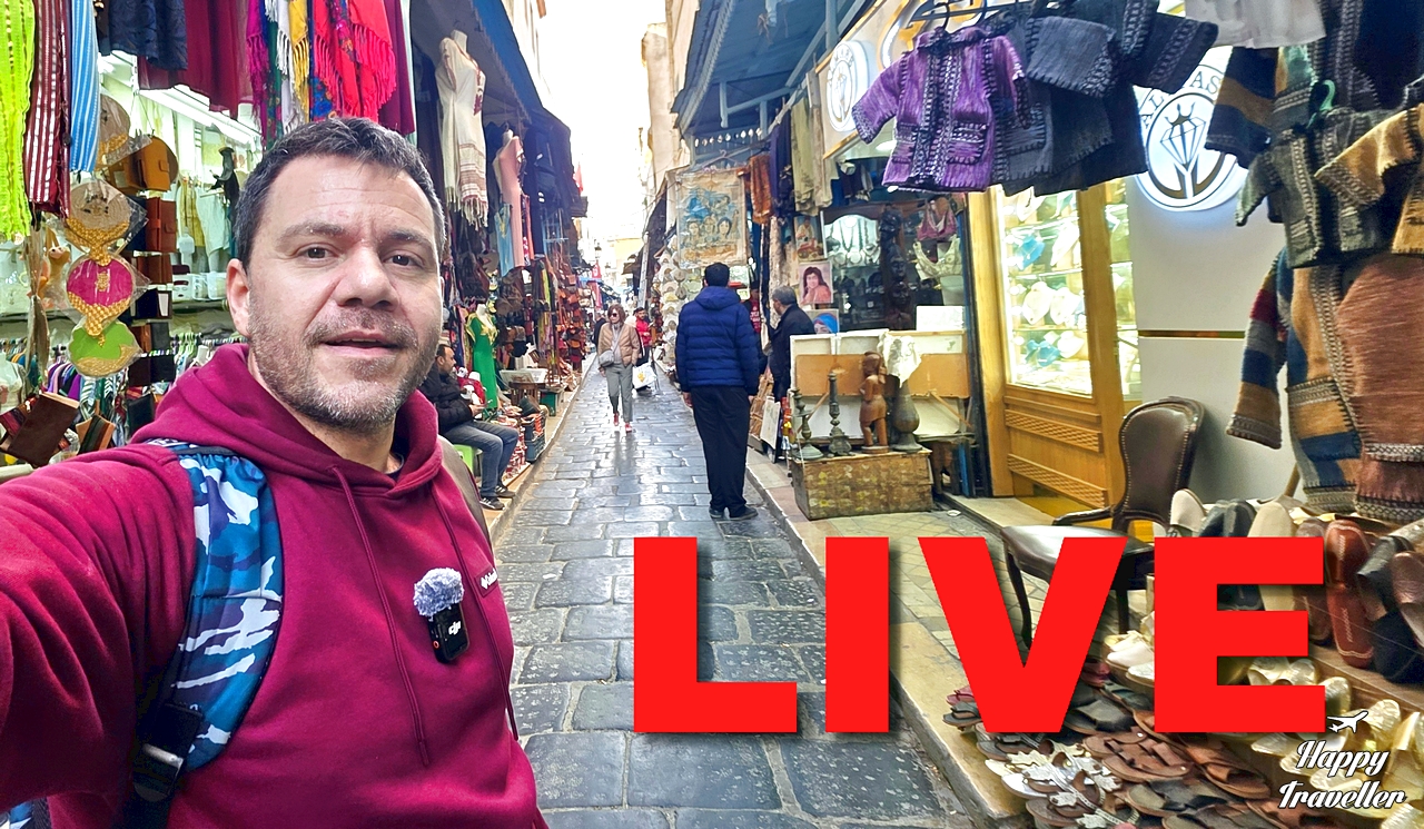Το σημερινό LIVE της 7ης Μαρτίου πραγματοποιήθηκε στην Τύνιδα, την πρωτεύουσα της Τυνησίας, μια ζωντανή και πολυσύχναστη πόλη που συνδυάζει ιστορία, παράδοση και σύγχρονη ζωή. Η πόλη αποτέλεσε έναν από τους βασικούς σταθμούς του ταξιδιού μας, στο πλαίσιο των γυρισμάτων για την ταξιδιωτική εκπομπή Happy Traveller.