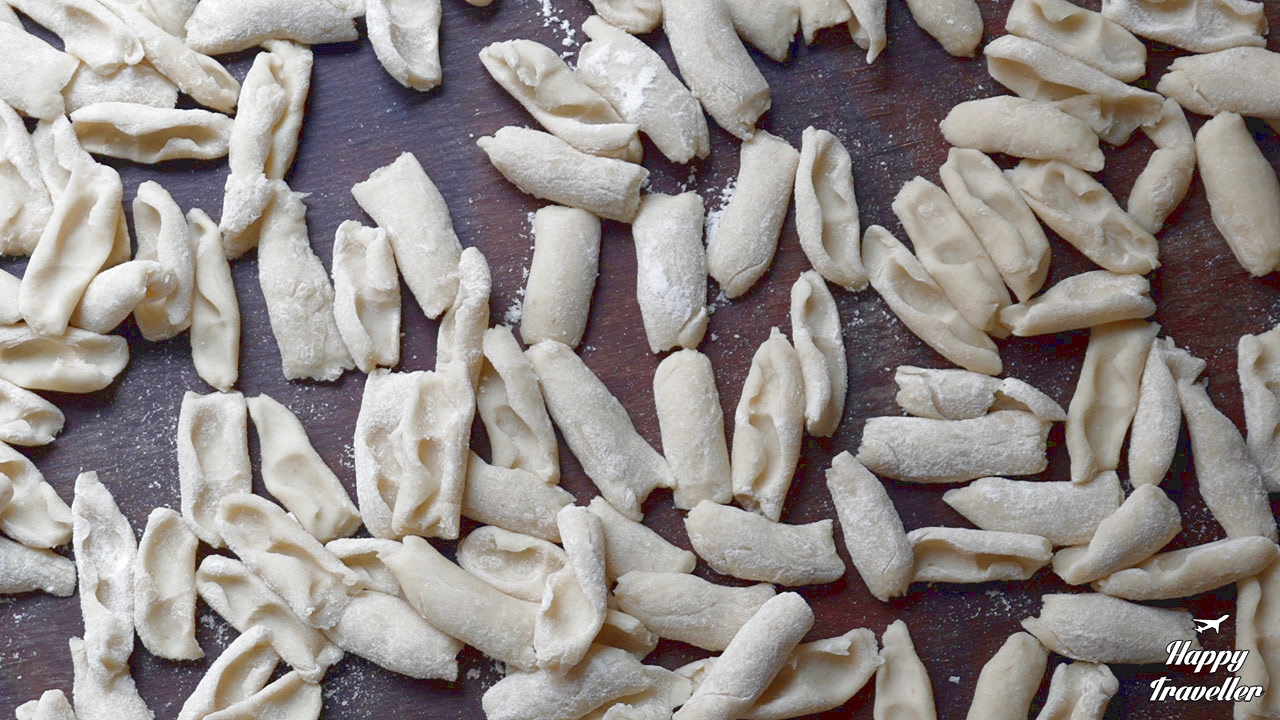 Φρεσκοπαρασκευασμένες μακαρούνες Καρπάθου απλωμένες σε δίσκο, έτοιμες για μαγείρεμα.