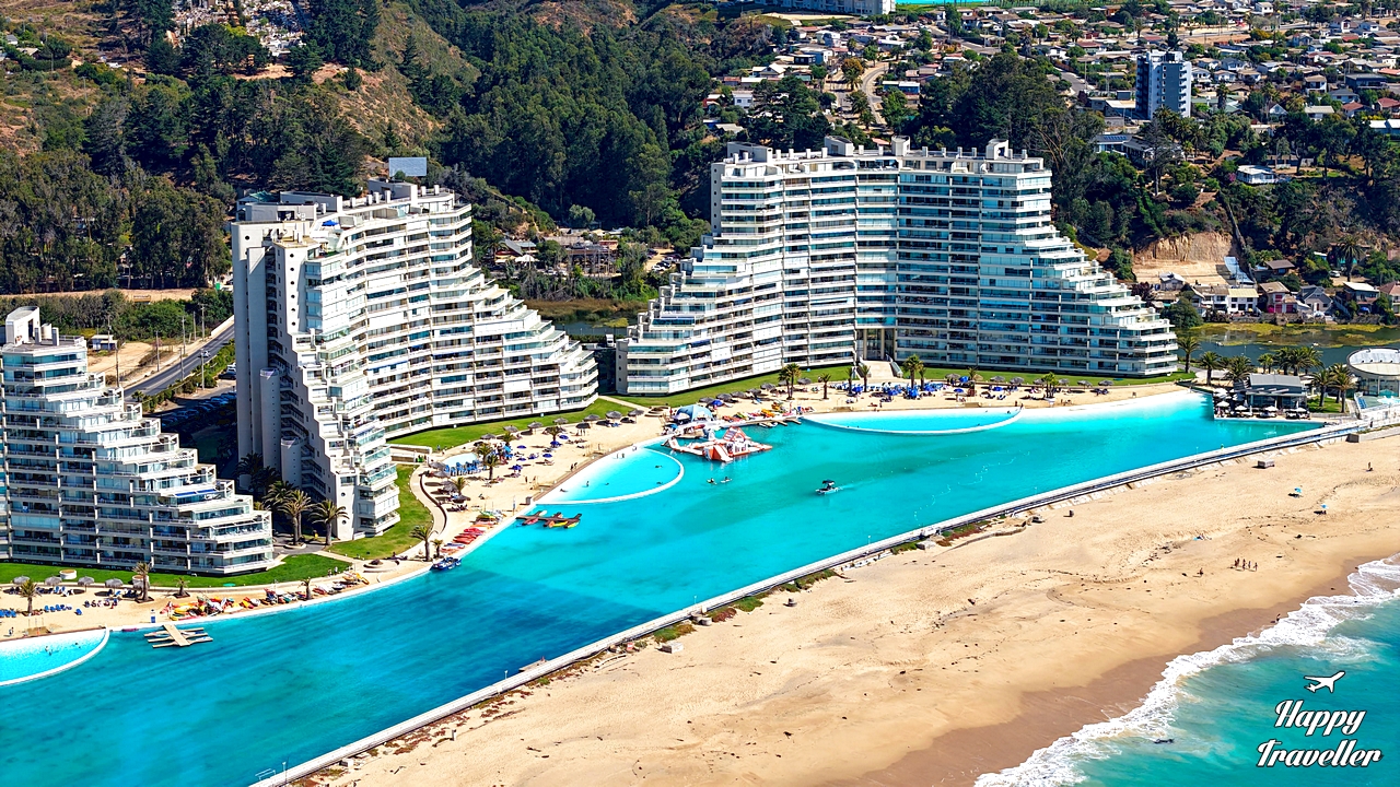 Η γιγαντιαία πισίνα του San Alfonso del Mar θεωρείται ένα από τα πιο εντυπωσιακά κατασκευαστικά έργα στον τουρισμό παγκοσμίως. Το μέγεθός της, το κρυστάλλινο νερό και το μοναδικό σκηνικό δίπλα στον Ειρηνικό Ωκεανό την κάνουν να μοιάζει περισσότερο με τροπική λιμνοθάλασσα παρά με πισίνα.