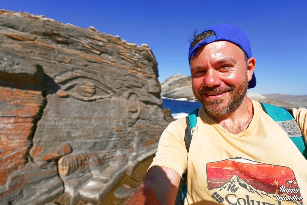 Αν περπατήσεις και την παραλία Καβαλουρκό και συνεχίσεις από την άλλη μεριά φτάνεις στα σημεία με τα σκαλιστά έργα στους βράχους.