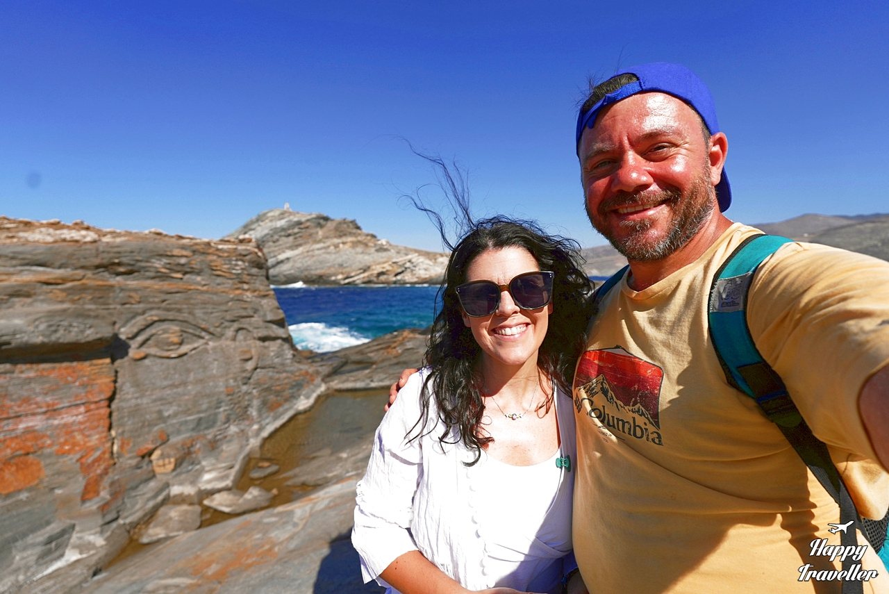 Μετά από την επίσκεψή μας στον Πάνορμο λοιπόν πήγαμε μέχρι τον «Αίολο», στην άκρη του κόλπου. Υπάρχει ένα υπέροχο σημείο εκεί, και πάνω στους βράχους έχουν σκαλίσει τον Αίολο. Έχει και πολλά μικρά όπως ψαριά, αστέρια και άλλα. Όμως το πιο εντυπωσιακό από όλα είναι ο Αίολος. Αξίζει να περπατήσεις μέχρι εκεί. Η ηρεμία και η άγρια ομορφιά του τοπίου θα σου μείνουν αξέχαστα!