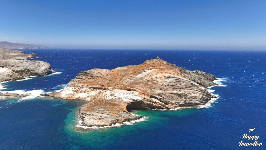 Ο φάρος χτίστηκε το 1887. Είναι ένας από τους παλαιότερους της Τήνου και μπορεί να προσεγγιστεί μόνο με σκάφος από τον Πάνορμο, εφόσον το επιτρέπουν οι καιρικές συνθήκες. Στον φάρο μπορείς να πας με δυσκολία. Η πρόσβαση στο νησάκι είναι δύσκολη επειδή τα βράχια που ενώνουν με την ενδοχώρα της Τήνου δεν μπορείς να τα περπατήσεις εύκολα. Ειδικά αν έχει κύμα όπως όταν πήγαμε εμείς είναι απαγορευτικό. Το ωραίο σημείο για να φτάσει κανείς, είναι έτσι κι αλλιώς εκεί που έχει τα γλυπτά!